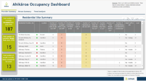The Ahikāroa dashboard shows the number of vacancies available across the different residential recovery services we coordinate access to. It also shows who has been referred to a particular residential provider, when they were referred, and can provide a list of the other residents staying at the residential service.
